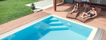 • Het wintertuineffect: het gesloten zwembaddak houdt het water veel warmer. Het door de zon verwarmde water wordt beschermd tegen wind en afkoeling door verdamping en u kunt genieten van de langere gebruiksduur.