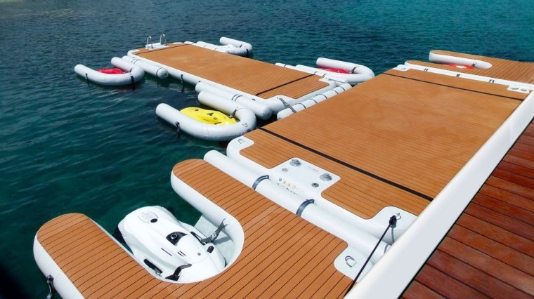 Deze platformen zijn voorzien van een viertal ankers in de vorm van waterzakken. Deze vullen zich met water onder het platform waardoor deze zeer stabiel in het water komt te liggen. Deze zijn eenvoudig te legen door het aantrekken van een band waardoor het vlot eenvoudig weer aan boord is te tillen.