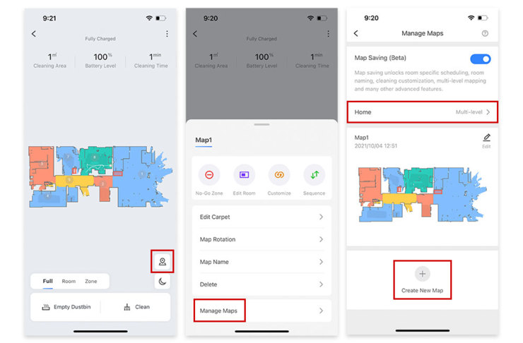 Als het een robotstofzuiger is met kaarten op meerdere niveaus, is de eerste stap om uit te zoeken hoeveel kaarten kunnen worden opgeslagen. Dit is afhankelijk van het apparaat. Via de app wordt het genereren van een nieuwe kaart gestart. De robot navigeert door de kamers, scant ze en slaat de kaart op bij het bereiken van het laadstation. Deze nieuwe kaart kan worden gebruikt om schoonmaakvoorkeuren te definiëren. De meeste fabrikanten geven een beschrijving van deze procedure in de gebruikershandleiding van de app.