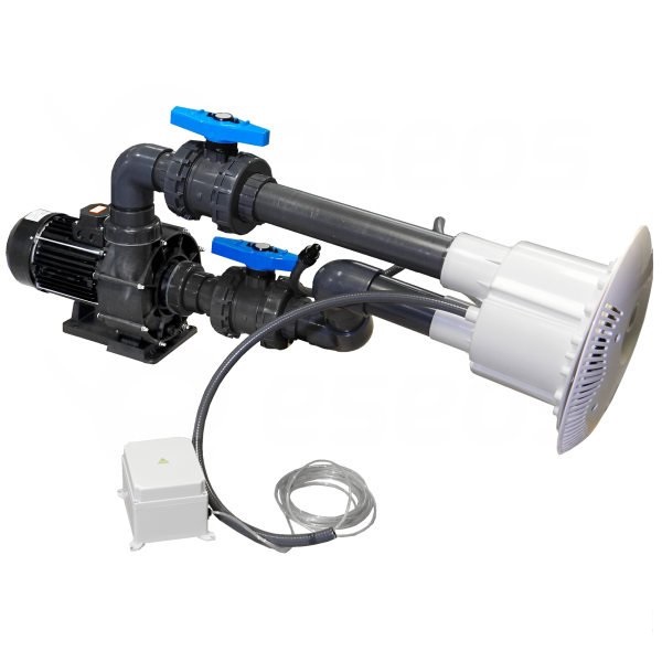 De V-Jet tegenstroom is bedoeld voor installatie in het lichaam van het zwembad, de pomp en leidingen worden in de schacht achter het zwembad geplaatst. Deze jetstream wordt compleet geleverd.