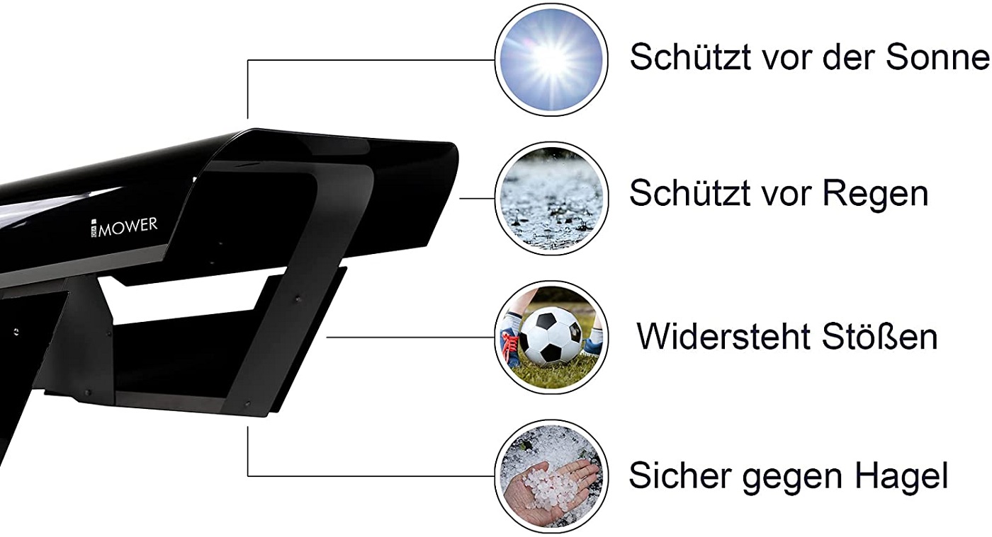 Nieuwste evolutie van de populaire Neo shelters-lijn van Idea Mower, een geheel nieuwe garage voor grasmaaiers, gebouwd met materialen van de hoogste kwaliteit en een unieke stijl. Duurzame roestvrijstalen en composiet aluminium constructie voor maximale bescherming tegen alle weersinvloeden. Het dak gaat open voor gemakkelijke toegang tot de bediening en het onderhoud van de robot.