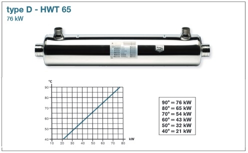 • Verwarming: uit een ketel, een warmtepomp, van zonnecollectoren of soortgelijke Type: D-HWT 65