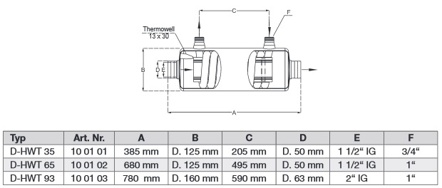 • Verwarming: uit een ketel, een warmtepomp, van zonnecollectoren of soortgelijke Type: D-HWT 93