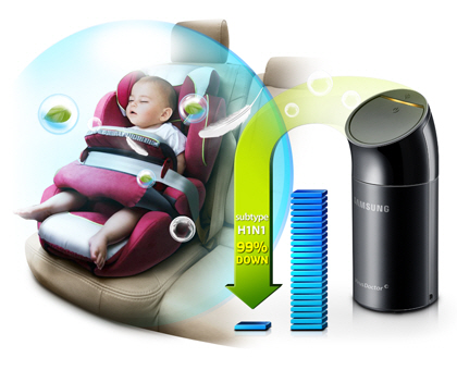 Of je nu rijdt om te werken of voor het gezamenlijk weg gaan voor een autoreis, u houdt de lucht in uw auto vrij van geuren, virussen uit de lucht en nies-opwekkende allergieen. Innovatieve technologie houdt de lucht op natuurlijke wijze schoon. Milieuvriendelijk S-Plasma-Ion-technologie van Samsung doet meer dan filteren van de lucht in uw auto. Het zendt waterstof en zuurstof ionen uit om  vuildeeltjes in de lucht te vernietigen. Een vleugje innovatie reinigt de lucht, zonder het filter te hoeven vervangen Moeiteloos genieten van schonere lucht.