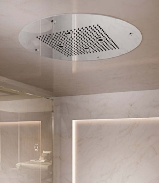Deze bestaat uit een ronde plafondinbouw douchekop met een diameter van 500 mm en beschikt ook over 2 LED-spots met wit licht.