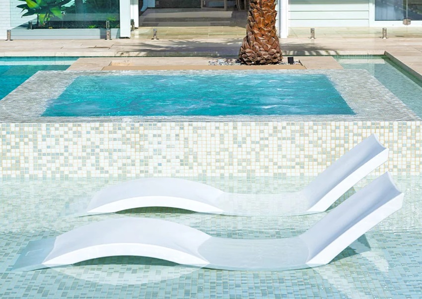 De Signature Chaise Lounger heeft een voorgevormde vorm en een ontwerp in resortstijl en biedt gegarandeerd de meest comfortabele en stijlvolle plek in uw zwembad om te ontspannen en te genieten van de zon.