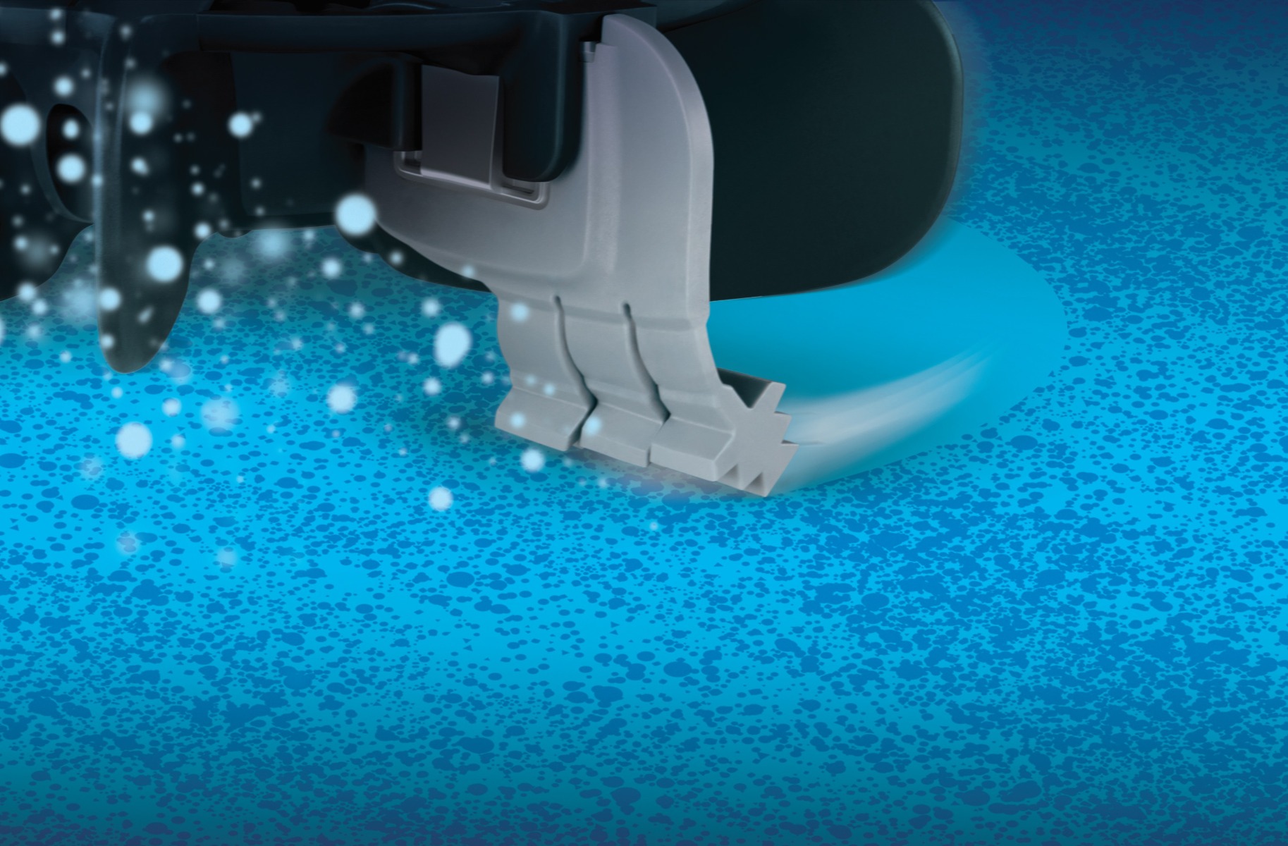 • Turbozuiging: een krachtige zuigturbine en twee zuigpropellers met borstels die het vuil en zand naar de mond van de zwembadreiniger leiden.